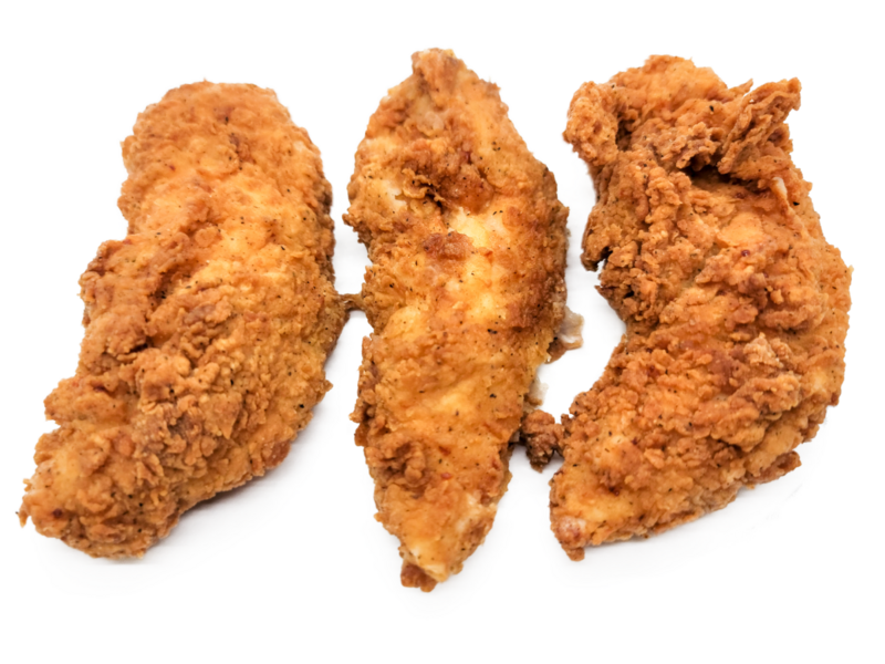 Succulent, large-sized chicken tenders, seasoned and hand-breaded with a crispy coating, providing a satisfying crunch with every bite.