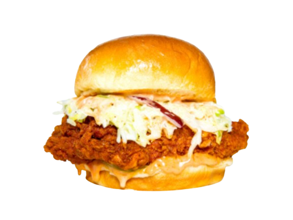 Hand-breaded chicken breast with dill pickles, and RTR sauce®.